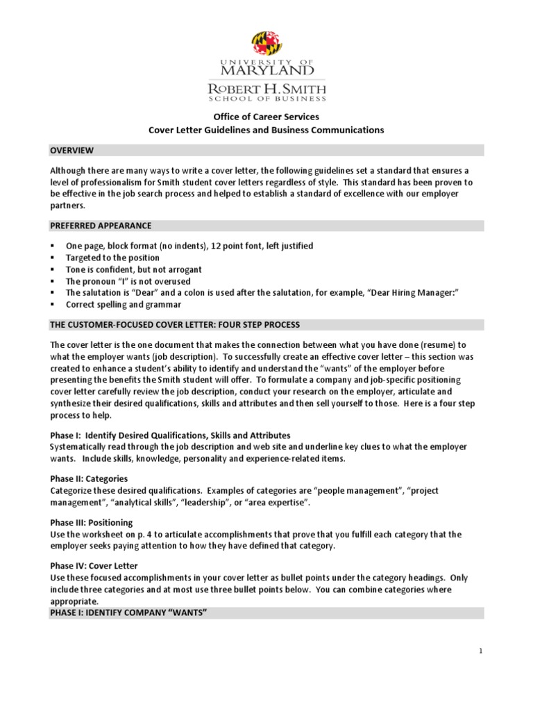 Cover Letter Guidelines Robert H Smith School Of Business Mba